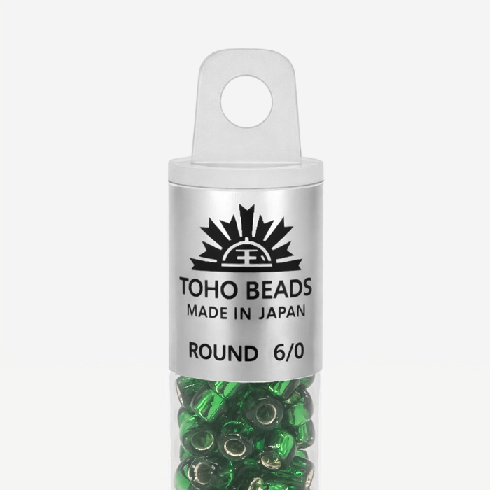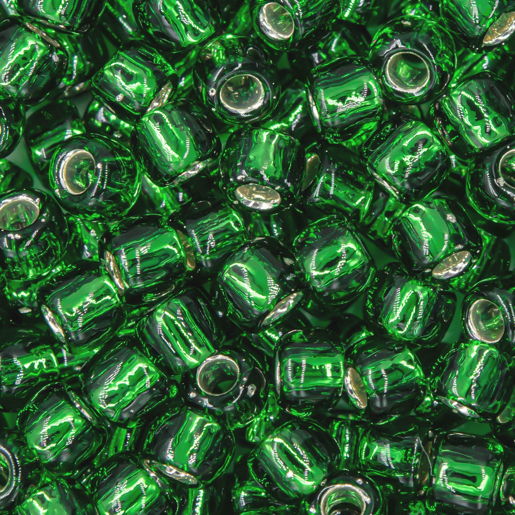 Японский бисер TOHO оттенок №27B Silver-Lined Grass Green (Травянисто-зеленый) - с внутренним серебрением, прозрачный, зеленый.
