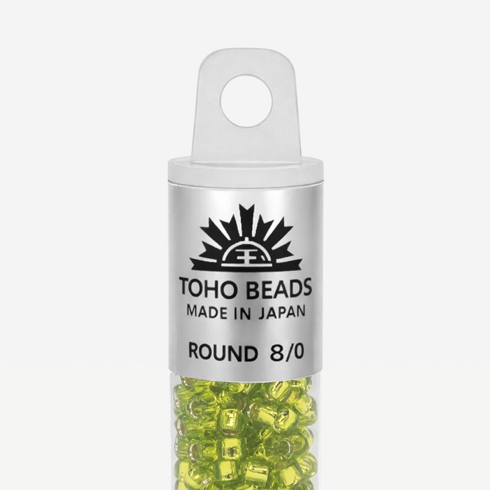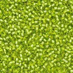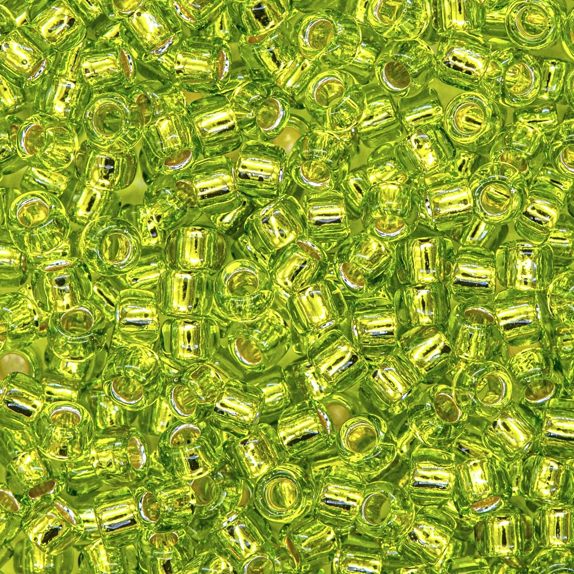 Японский бисер TOHO оттенок №24 Silver-Lined Lime Green (Зелёный лайм) - прозрачный с внутренним серебрением, зеленый.