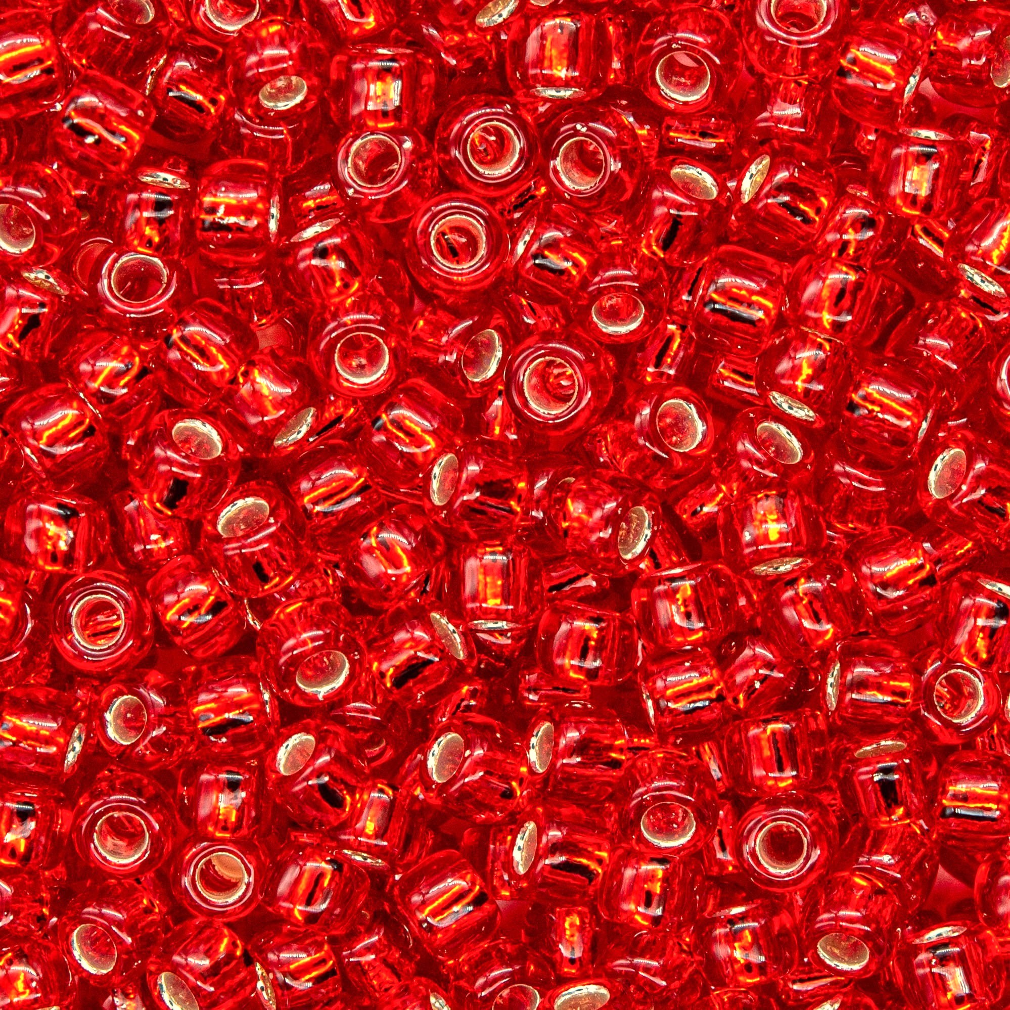 Японский бисер TOHO оттенок №25B Silver-Lined Siam Ruby (Сиамский рубин) - прозрачный с внутренним серебрением, красный.
