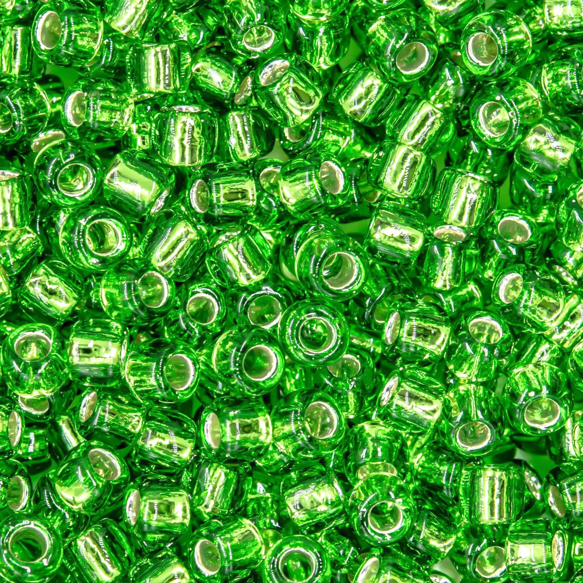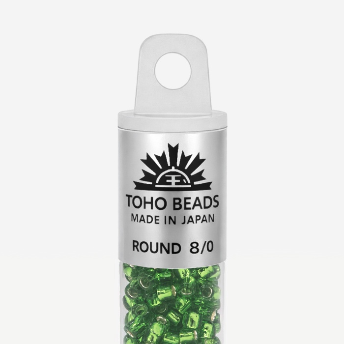 Японский бисер TOHO оттенок №27 Silver-Lined Peridot (Перидот) - с внутренним серебрением, прозрачный, светло-зеленый.