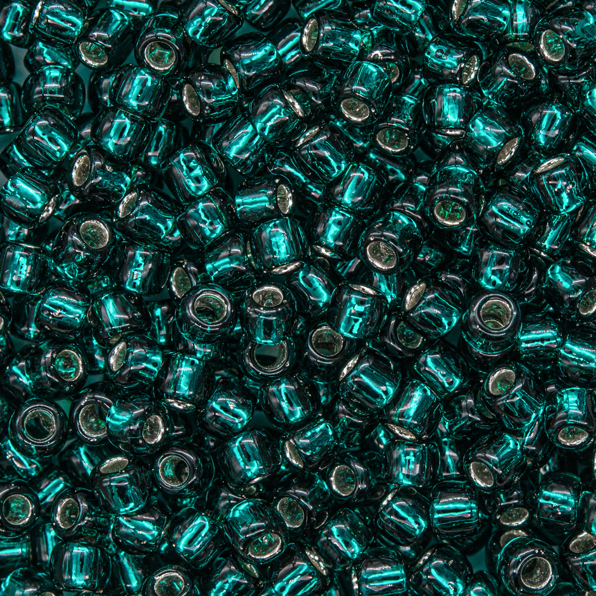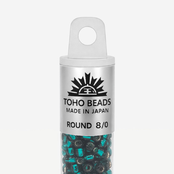 Японский бисер TOHO оттенок №27BD Silver-Lined Teal (Бирюзовый) - с внутренним серебрением, прозрачный, бирюзовый.