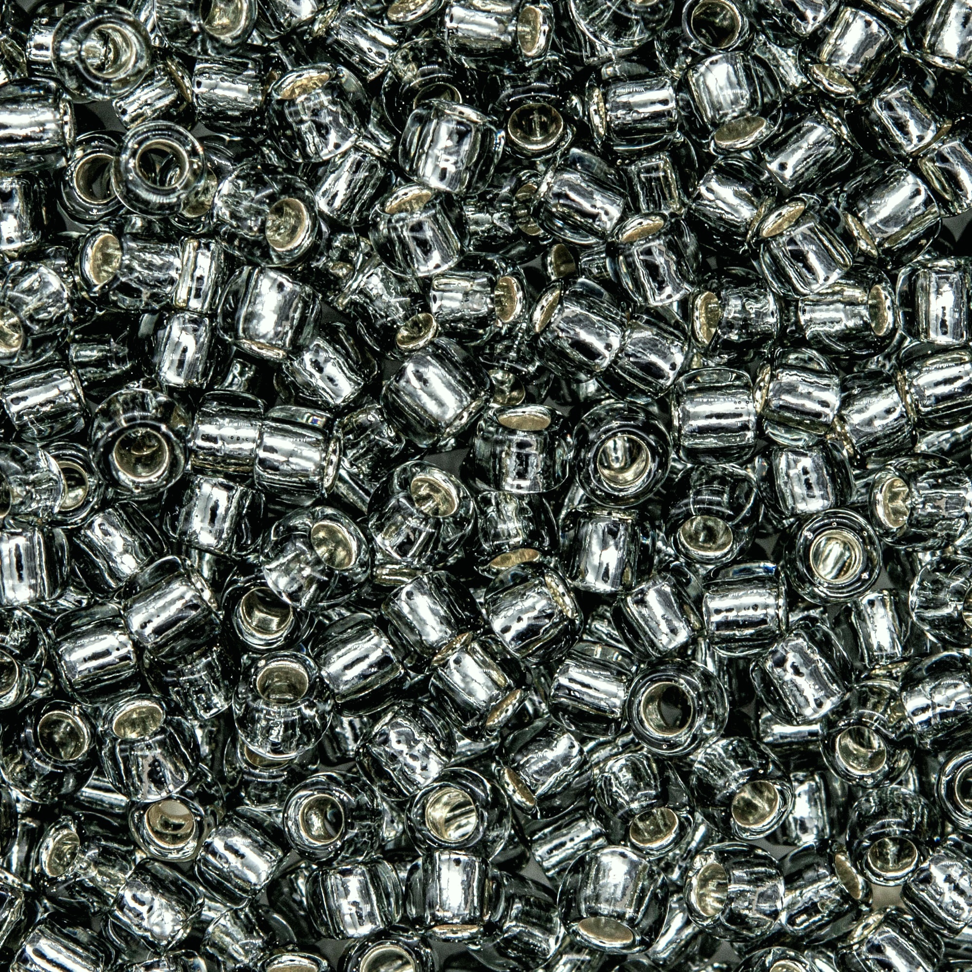 Японский бисер TOHO оттенок №29 Silver-Lined Black Diamond (Черный бриллиант) - с внутренним серебрением, прозрачный, серебристый.