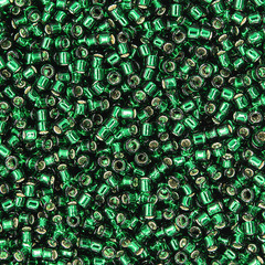 Японский бисер TOHO оттенок №36 Silver-Lined Green Emerald (Зеленый изумруд) - с внутренним серебрением, прозрачный, зеленый.