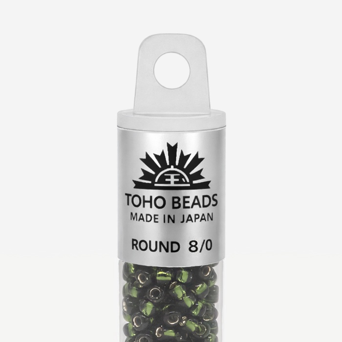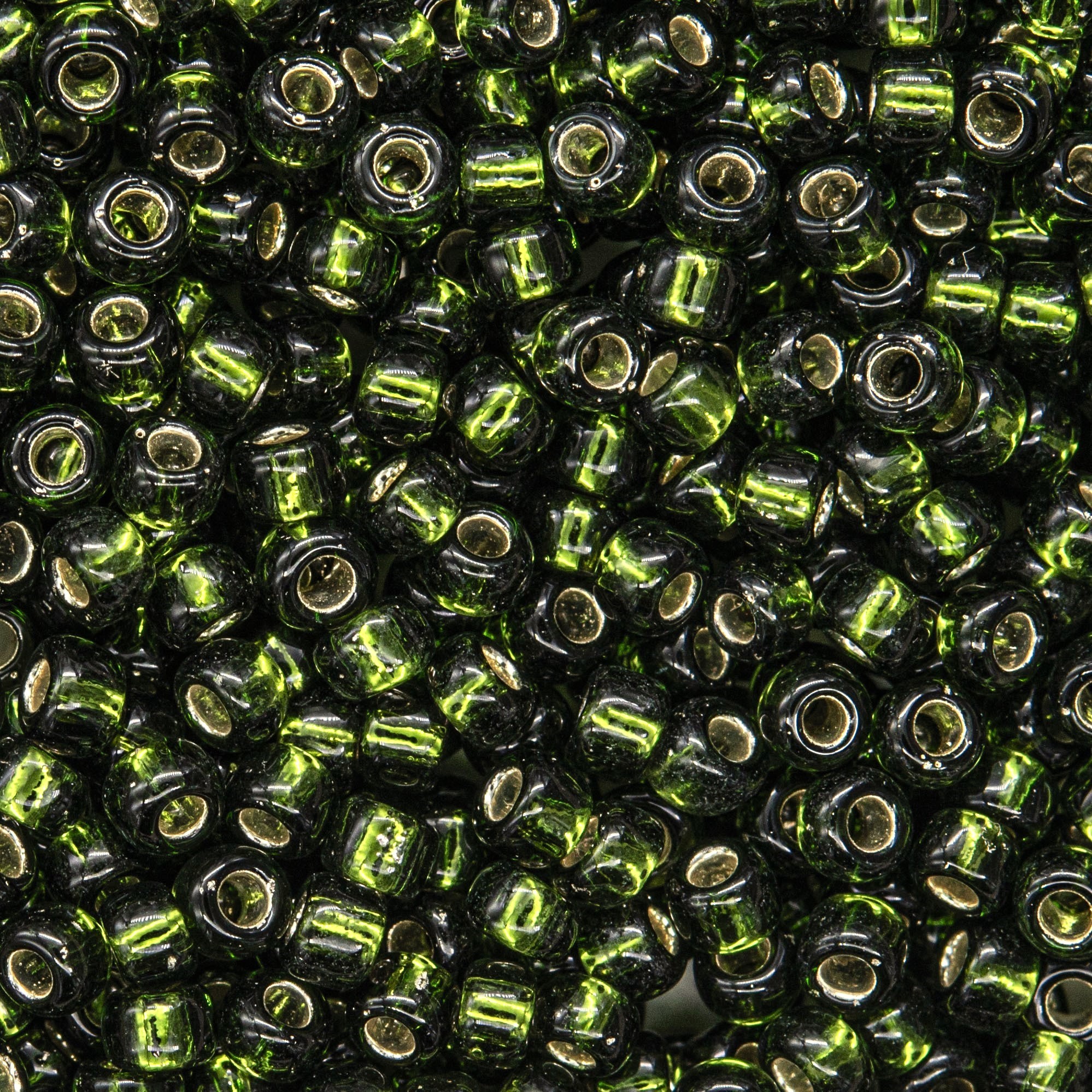 Японский бисер TOHO оттенок 37 Silver-Lined Olivine (Оливин) - прозрачный с внутренним серебрением, зеленый.