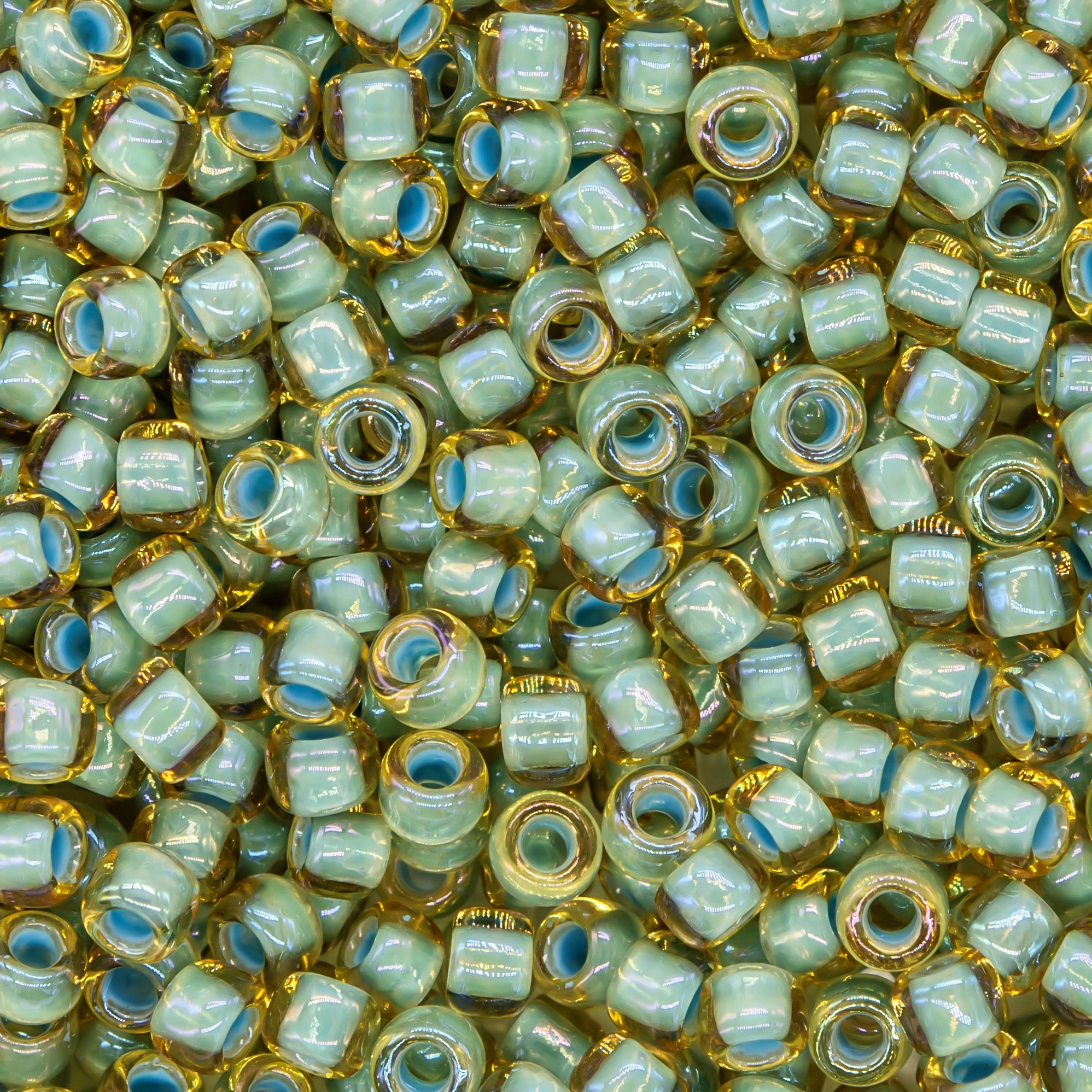 Японский бисер TOHO оттенок №952 Rainbow Light Topaz/ Sea Foam (Радужный светлый топаз/ Морская пена) - окрашенный изнутри прозрачный, зеленый.