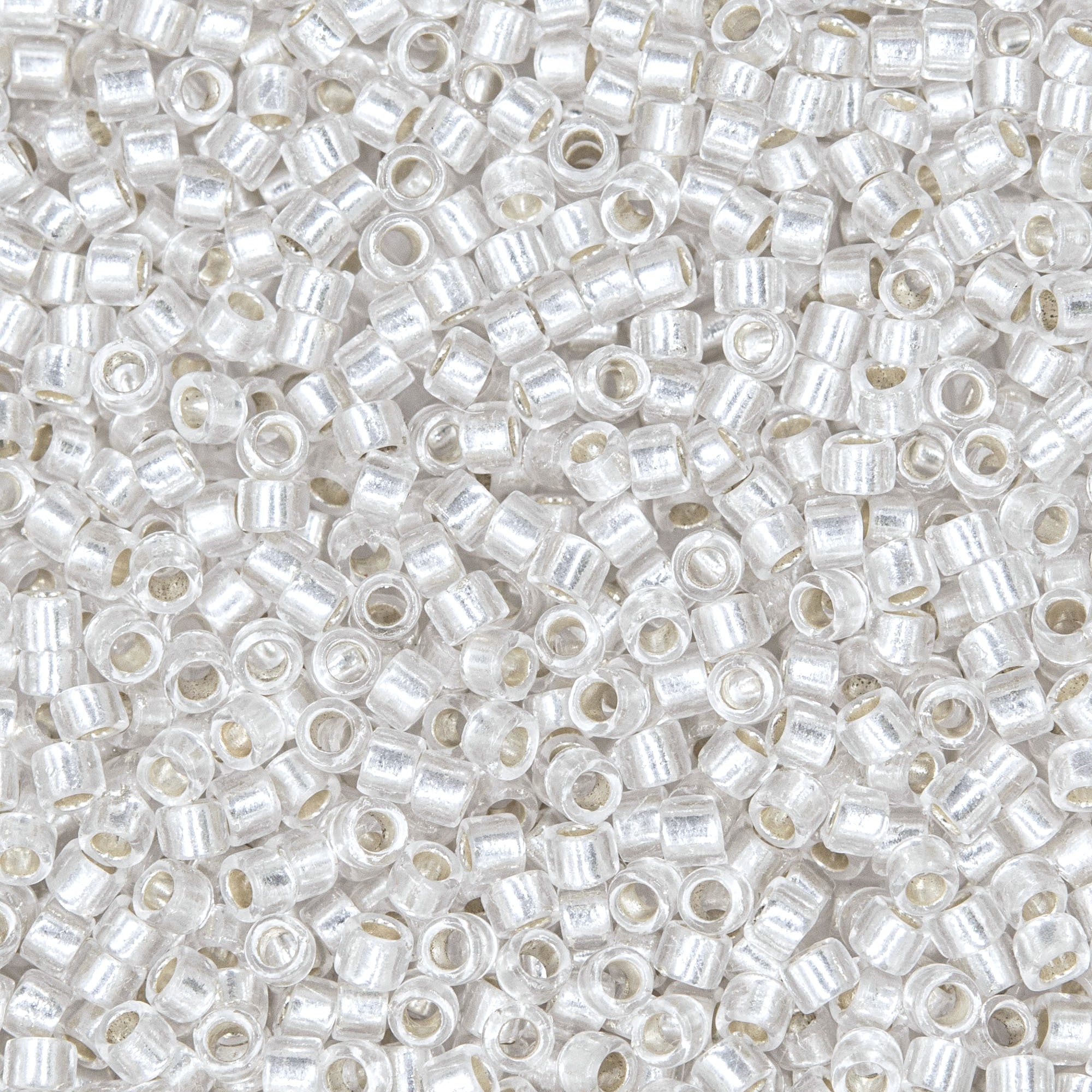 Японский бисер TOHO Treasure оттенок №21F Silver-Lined Frosted Crystal (Кристалл) - с внутренним серебрением, прозрачный матовый, белый.