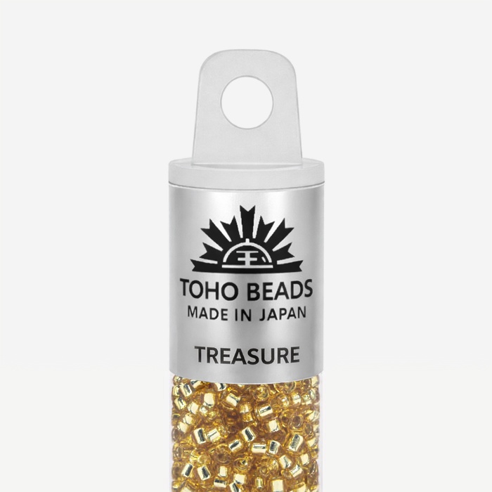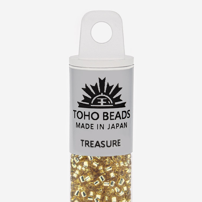 Бусины Toho Treasure имеют размер около 1,6 мм, в одном грамме около 202 штук. Бисер данного вида имеет цилиндрическую форму, идеально подходящей для кирпичного плетения, которое часто используются, например, при изготовлении колец и чокеров. По сравнению с другими производителями, бусины TOHO имеют более крупное отверстие, что позволяет легче вдевать в него нить несколько раз. Бисер TOHO является одним из лучших в мире и имеет огромное разнообразие моделей и цветов.