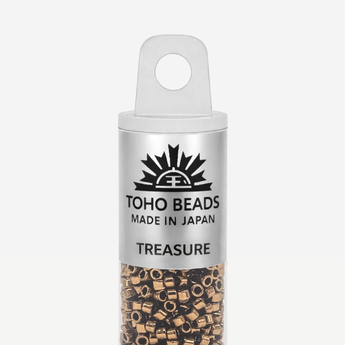 Бусины Toho Treasure имеют размер около 1,6 мм, в одном грамме около 202 штук. Бисер данного вида имеет цилиндрическую форму, идеально подходящей для кирпичного плетения, которое часто используются, например, при изготовлении колец и чокеров. По сравнению с другими производителями, бусины TOHO имеют более крупное отверстие, что позволяет легче вдевать в него нить несколько раз. Бисер TOHO является одним из лучших в мире и имеет огромное разнообразие моделей и цветов.