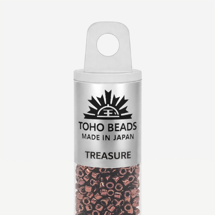 Бусины Toho Treasure имеют размер около 1,6 мм, в одном грамме около 202 штук. Бисер данного вида имеет цилиндрическую форму, идеально подходящей для кирпичного плетения, которое часто используются, например, при изготовлении колец и чокеров. По сравнению с другими производителями, бусины TOHO имеют более крупное отверстие, что позволяет легче вдевать в него нить несколько раз. Бисер TOHO является одним из лучших в мире и имеет огромное разнообразие моделей и цветов.