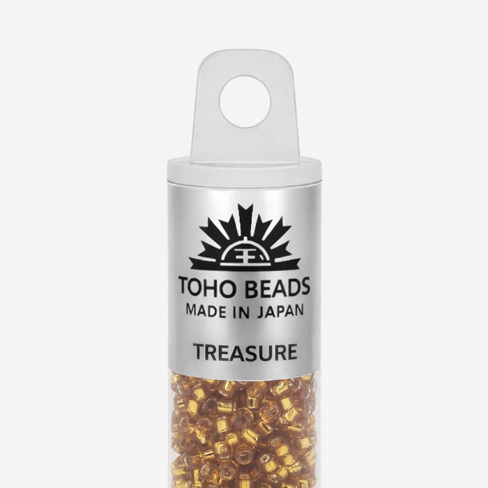 Бусины Toho Treasure имеют размер около 1,6мм, в одном грамме около 202 штук. Бисер данного вида имеет цилиндрическую форму, идеально подходящей для кирпичного плетения, которое часто используются, например, при изготовлении колец и чокеров. По сравнению с другими производителями, бусины TOHO имеют более крупное отверстие, что позволяет легче вдевать в него нить несколько раз. Бисер TOHO является одним из лучших в мире и имеет огромное разнообразие моделей и цветов.