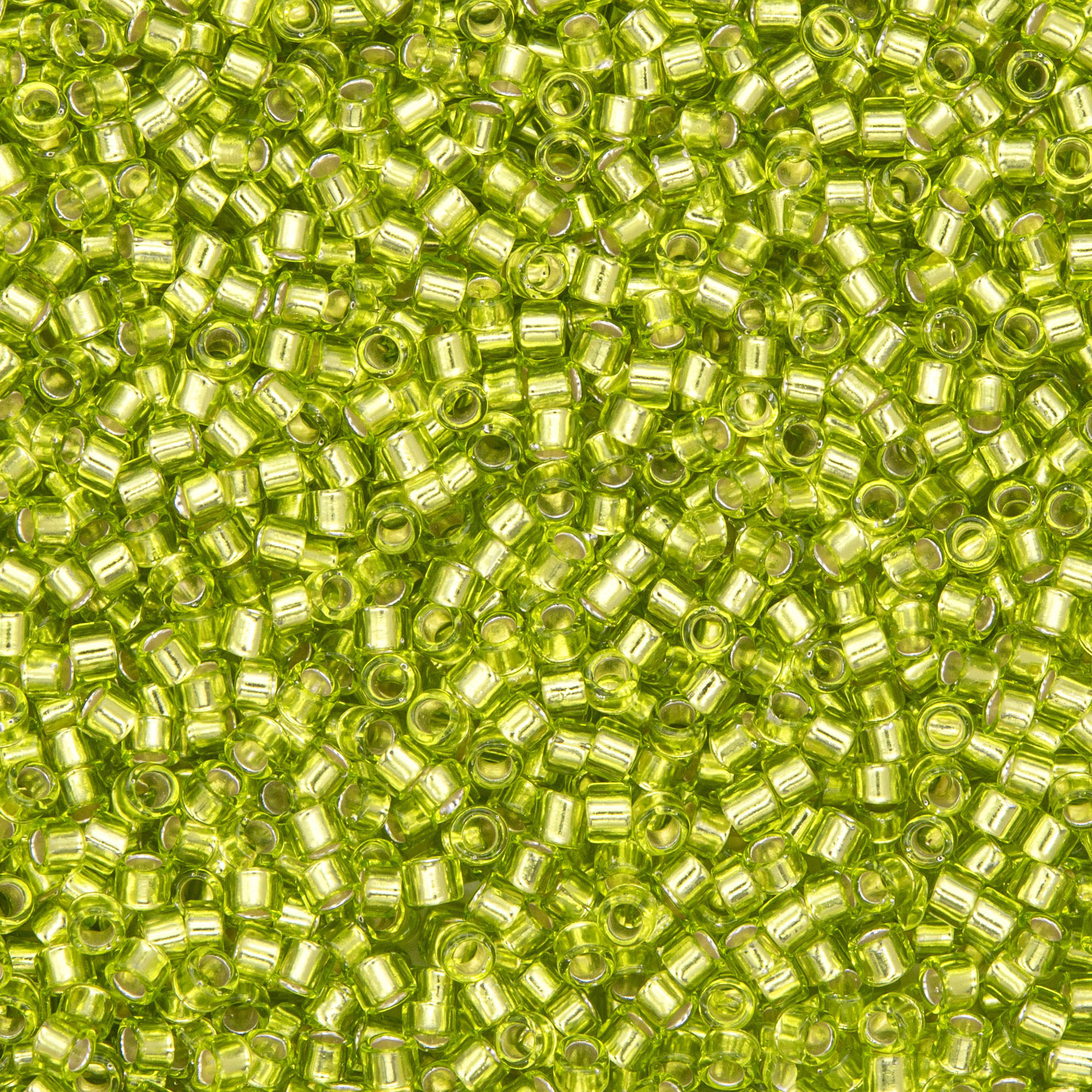Японский бисер TOHO Treasure оттенок №24 Silver-Lined Lime Green (Зеленый лайм) - прозрачный с внутренним серебрением, зеленый.