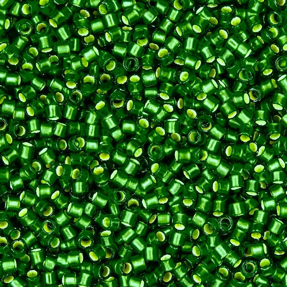 Японский бисер TOHO Treasure оттенок №27BF Frosted Silver-Lined Grass Green (Травянисто-зеленый) - с внутренним серебрением, прозрачный матовый, зеленый.