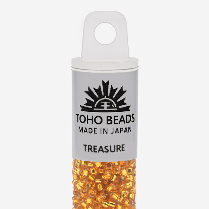 Бусины Toho Treasure имеют размер около 1,6 мм, в одном грамме около 202 штук. Бисер данного вида имеет цилиндрическую форму, идеально подходящей для кирпичного плетения, которое часто используются, например, при изготовлении колец и чокеров. По сравнению с другими производителями, бусины TOHO имеют более крупное отверстие, что позволяет легче вдевать в него нить несколько раз. Бисер TOHO является одним из лучших в мире и имеет огромное разнообразие моделей и цветов.