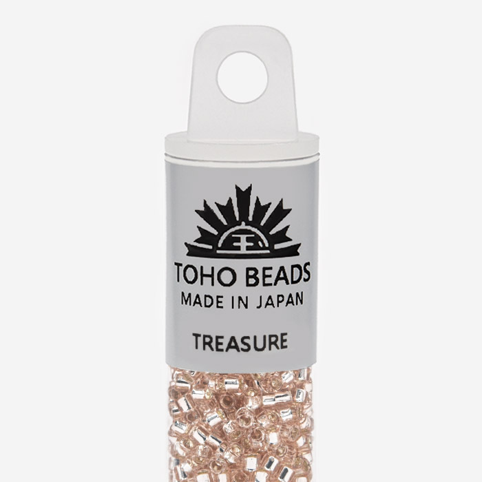 Бусины Toho Treasure имеют размер около 1,6 мм, в одном грамме около 202 штук. Бисер данного вида имеет цилиндрическую форму, идеально подходящей для кирпичного плетения, которое часто используются, например, при изготовлении колец и чокеров. По сравнению с другими производителями, бусины TOHO имеют более крупное отверстие, что позволяет легче вдевать в него нить несколько раз. Бисер TOHO является одним из лучших в мире и имеет огромное разнообразие моделей и цветов.