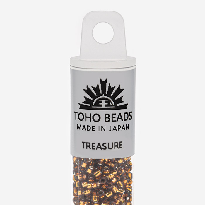 Бусины Toho Treasure имеют размер около 1,6 мм, в одном грамме около 202 штук. Бисер данного вида имеет цилиндрическую форму, идеально подходящей для кирпичного плетения, которое часто используются, например, при изготовлении колец и чокеров. По сравнению с другими производителями, бусины TOHO имеют более крупное отверстие, что позволяет легче вдевать в него нить несколько раз. Бисер TOHO является одним из лучших в мире и имеет огромное разнообразие моделей и цветов.
