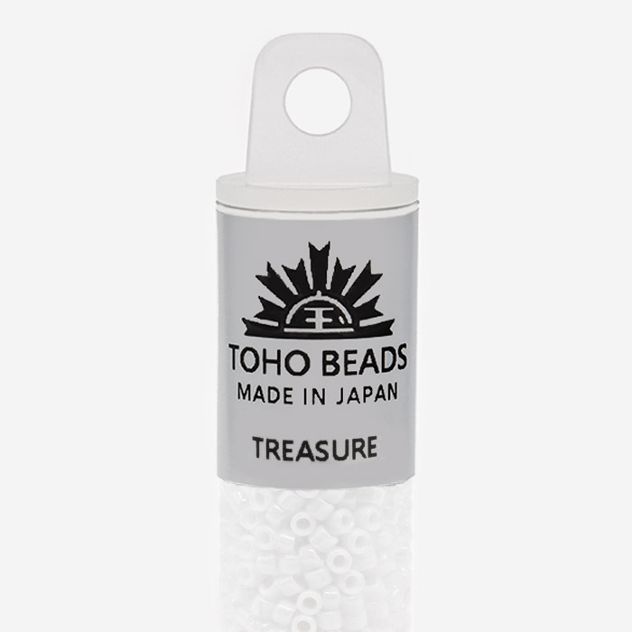 Бусины Toho Treasure имеют размер около 1,6 мм, в одном грамме около 202 штук. Бисер данного вида имеет цилиндрическую форму, идеально подходящей для кирпичного плетения, которое часто используются, например, при изготовлении колец и чокеров. По сравнению с другими производителями, бусины TOHO имеют более крупное отверстие, что позволяет легче вдевать в него нить несколько раз. Бисер TOHO является одним из лучших в мире и имеет огромное разнообразие моделей и цветов.