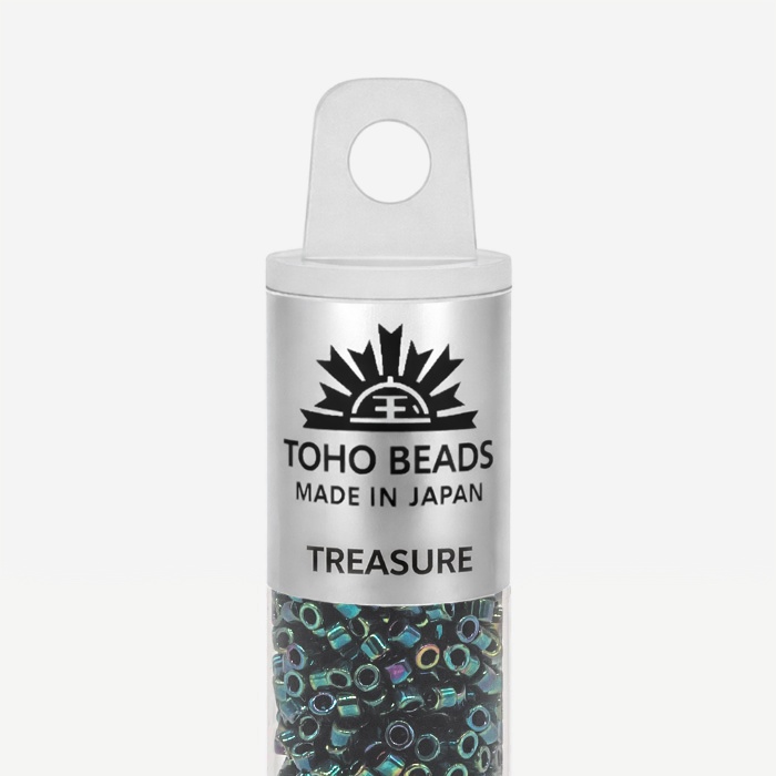 Бусины Toho Treasure имеют размер около 1,6 мм, в одном грамме около 202 штук. Бисер данного вида имеет цилиндрическую форму, идеально подходящей для кирпичного плетения, которое часто используются, например, при изготовлении колец и чокеров. По сравнению с другими производителями, бусины TOHO имеют более крупное отверстие, что позволяет легче вдевать в него нить несколько раз. Бисер TOHO является одним из лучших в мире и имеет огромное разнообразие моделей и цветов.
