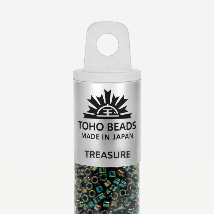 Бусины Toho Treasure имеют размер около 1,6 мм, в одном грамме около 202 штук. Бисер данного вида имеет цилиндрическую форму, идеально подходящей для кирпичного плетения, которое часто используются, например, при изготовлении колец и чокеров. По сравнению с другими производителями, бусины TOHO имеют более крупное отверстие, что позволяет легче вдевать в него нить несколько раз. Бисер TOHO является одним из лучших в мире и имеет огромное разнообразие моделей и цветов.