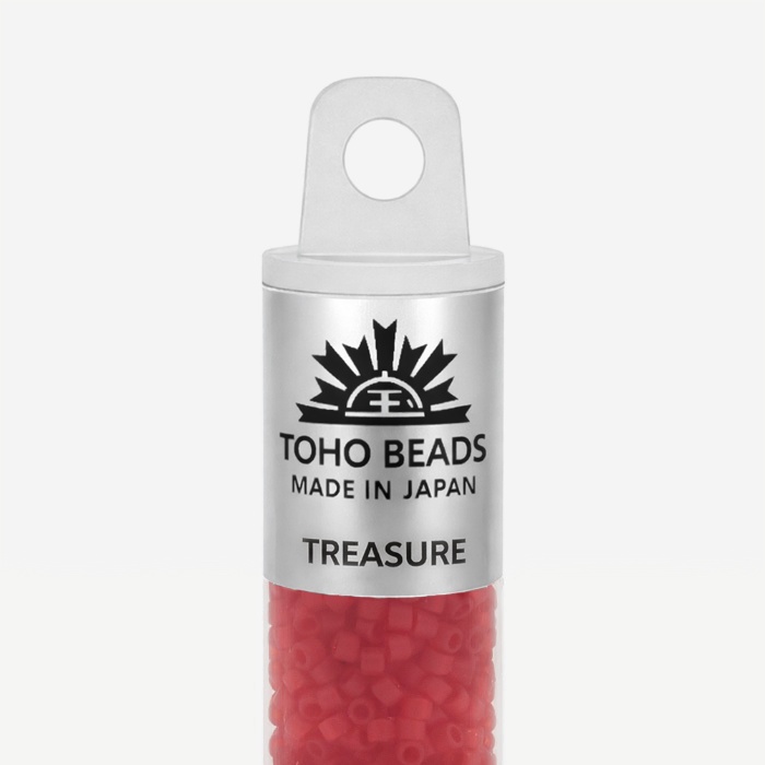 Бусины Toho Treasure имеют размер около 1,6 мм, в одном грамме около 202 штук. Бисер данного вида имеет цилиндрическую форму, идеально подходящей для кирпичного плетения, которое часто используются, например, при изготовлении колец и чокеров. По сравнению с другими производителями, бусины TOHO имеют более крупное отверстие, что позволяет легче вдевать в него нить несколько раз. Бисер TOHO является одним из лучших в мире и имеет огромное разнообразие моделей и цветов.