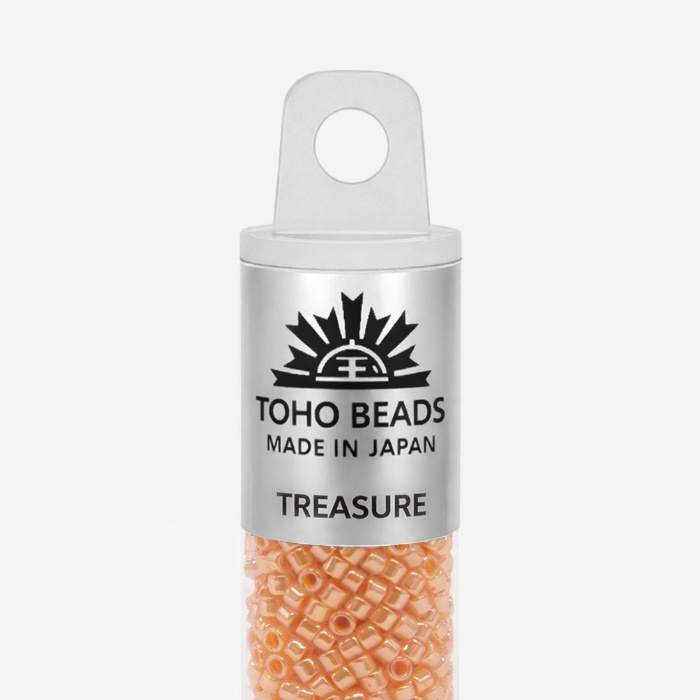 Бусины Toho Treasure имеют размер около 1,6 мм, в одном грамме около 202 штук. Бисер данного вида имеет цилиндрическую форму, идеально подходящей для кирпичного плетения, которое часто используются, например, при изготовлении колец и чокеров. По сравнению с другими производителями, бусины TOHO имеют более крупное отверстие, что позволяет легче вдевать в него нить несколько раз. Бисер TOHO является одним из лучших в мире и имеет огромное разнообразие моделей и цветов.