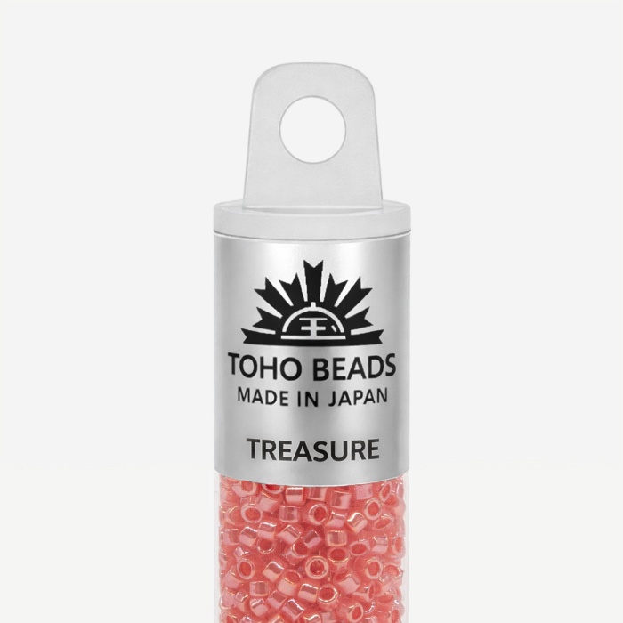 Бусины Toho Treasure имеют размер около 1,6 мм, в одном грамме около 202 штук. Бисер данного вида имеет цилиндрическую форму, идеально подходящей для кирпичного плетения, которое часто используются, например, при изготовлении колец и чокеров. По сравнению с другими производителями, бусины TOHO имеют более крупное отверстие, что позволяет легче вдевать в него нить несколько раз. Бисер TOHO является одним из лучших в мире и имеет огромное разнообразие моделей и цветов.