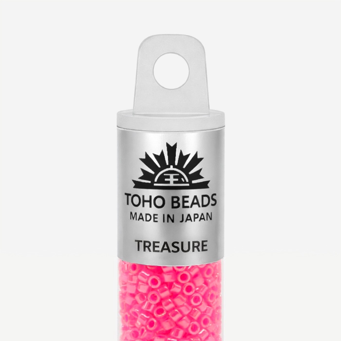 Бусины Toho Treasure имеют размер около 1,6 мм, в одном грамме около 202 штук. Бисер данного вида имеет цилиндрическую форму, идеально подходящей для кирпичного плетения, которое часто используются, например, при изготовлении колец и чокеров. По сравнению с другими производителями, бусины TOHO имеют более крупное отверстие, что позволяет легче вдевать в него нить несколько раз. Бисер TOHO является одним из лучших в мире и имеет огромное разнообразие моделей и цветов.