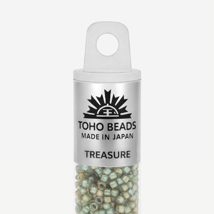 Бусины Toho Treasure имеют размер около 1,6 мм, в одном грамме около 202 штук. Бисер данного вида имеет цилиндрическую форму, идеально подходящей для кирпичного плетения, которое часто используются, например, при изготовлении колец и чокеров. По сравнению с другими производителями, бусины TOHO имеют более крупное отверстие, что позволяет легче вдевать в него нить несколько раз. Бисер TOHO является одним из лучших в мире и имеет огромное разнообразие моделей и цветов.