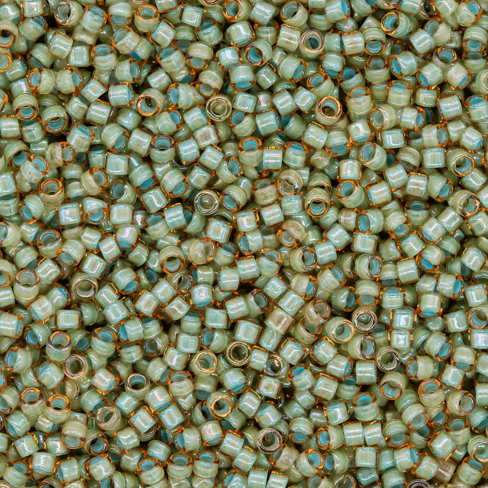 Японский бисер TOHO Treasure оттенок №952 Rainbow Light Topaz/ Sea Foam (Радужный светлый топаз/ Морская пена) - окрашенный изнутри прозрачный, зеленый.