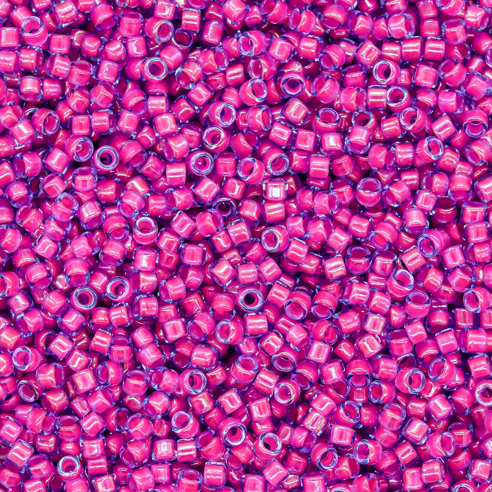 Японский бисер TOHO Treasure оттенок №980 Luminous Light Sapphire/ Neon Pink (Светлый сапфир/ Неоновый розовый) - окрашенный изнутри глянцевый, фиолетовый.