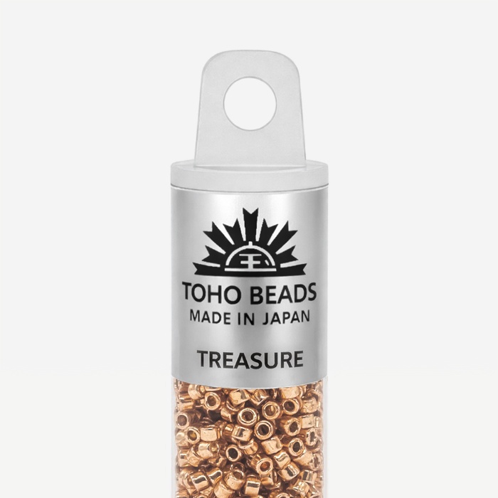 Бусины Toho Treasure имеют размер около 1,6 мм, в одном грамме около 202 штук. Бисер данного вида имеет цилиндрическую форму, идеально подходящей для кирпичного плетения, которое часто используются, например, при изготовлении колец и чокеров. По сравнению с другими производителями, бусины TOHO имеют более крупное отверстие, что позволяет легче вдевать в него нить несколько раз. Бисер TOHO является одним из лучших в мире и имеет огромное разнообразие моделей и цветов.