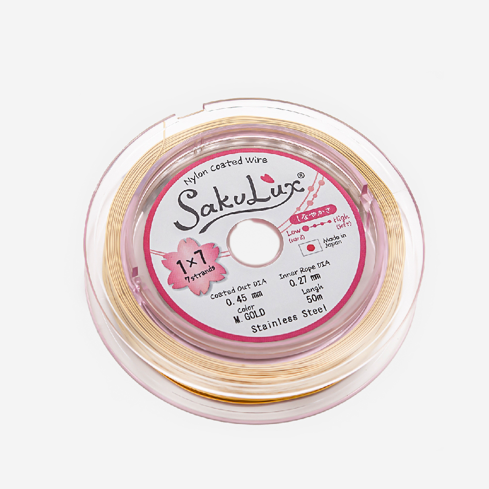 Японский ювелирный тросик SakuLux 7 диаметр 0,45мм, цвет "Сатиновое золото", катушка 50 метров.