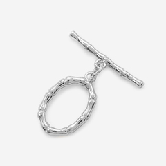 Замочек-тогл представляет собой надежную и простую конструкцию. В кольцо на украшении продевается горизонтальная палочка, которая крепится с противоположной стороны изделия. Выскальзывание крепежа в таком замке практически невозможно. Помимо своей основной функции может выполнять роль декоративного элемента.