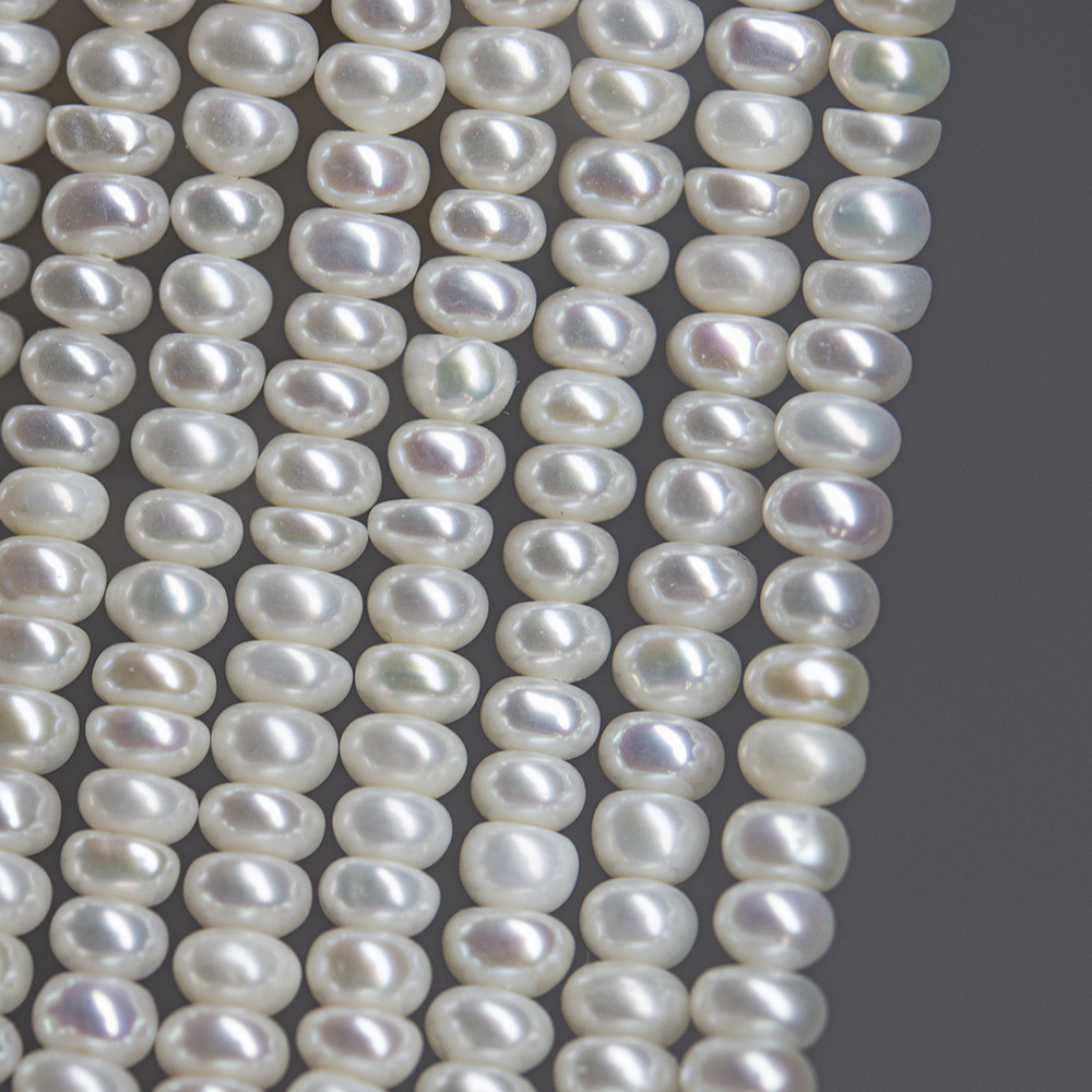Культивированный жемчуг высокого качества, похожий на кукурузные ядрышки. Размер жемчужин около 2,5*5мм.