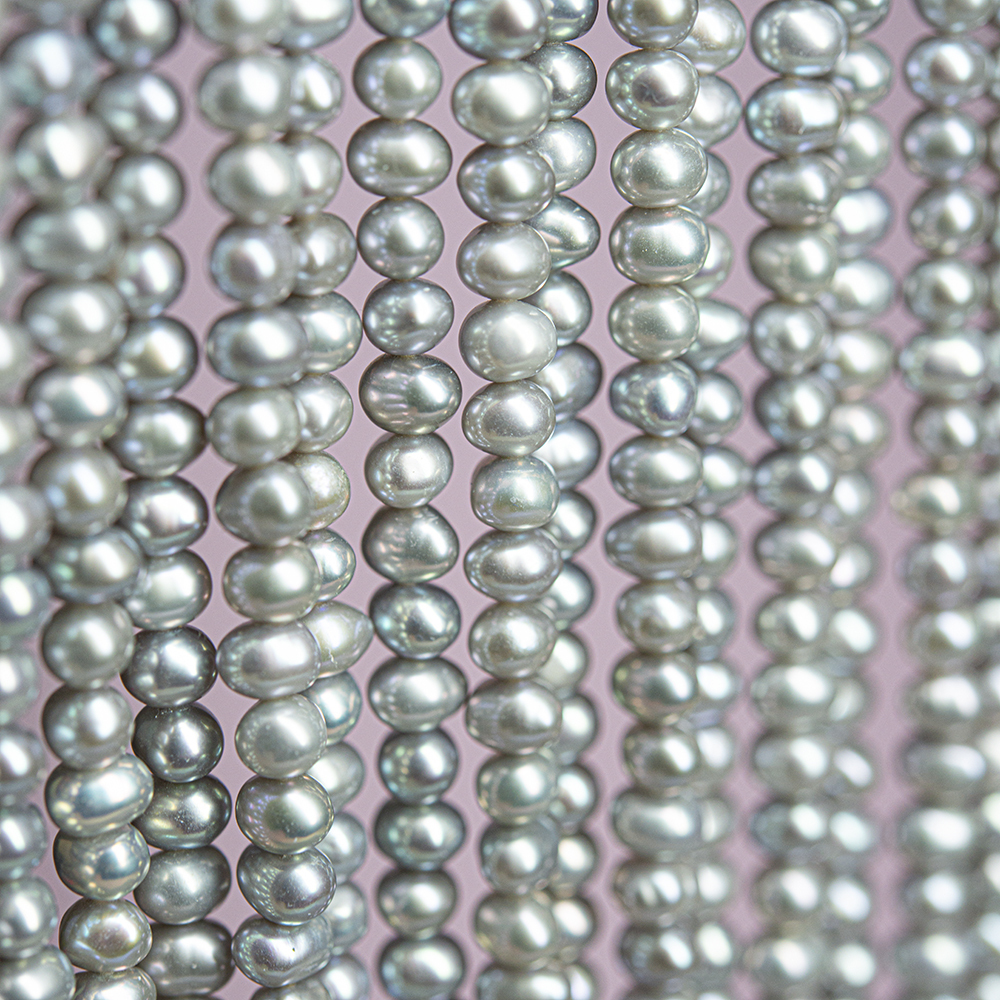 Культивированный жемчуг серого цвета очень высокого качества с поперечным отверстием. Размер жемчужин около 4*5,5-6мм.