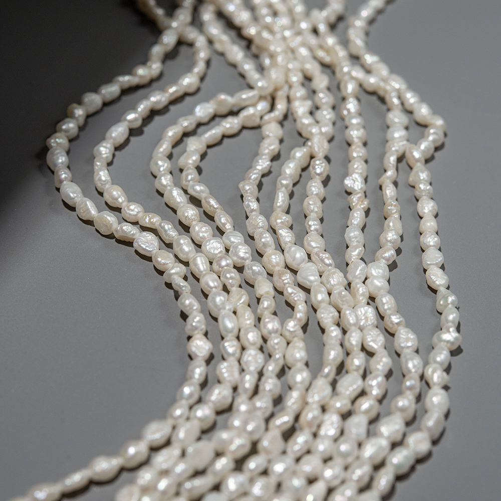 Небольшой жемчуг вытянутой формы популярного размера 3,5*5мм(+/-0,5мм) белого цвета с кремовым подтоном.