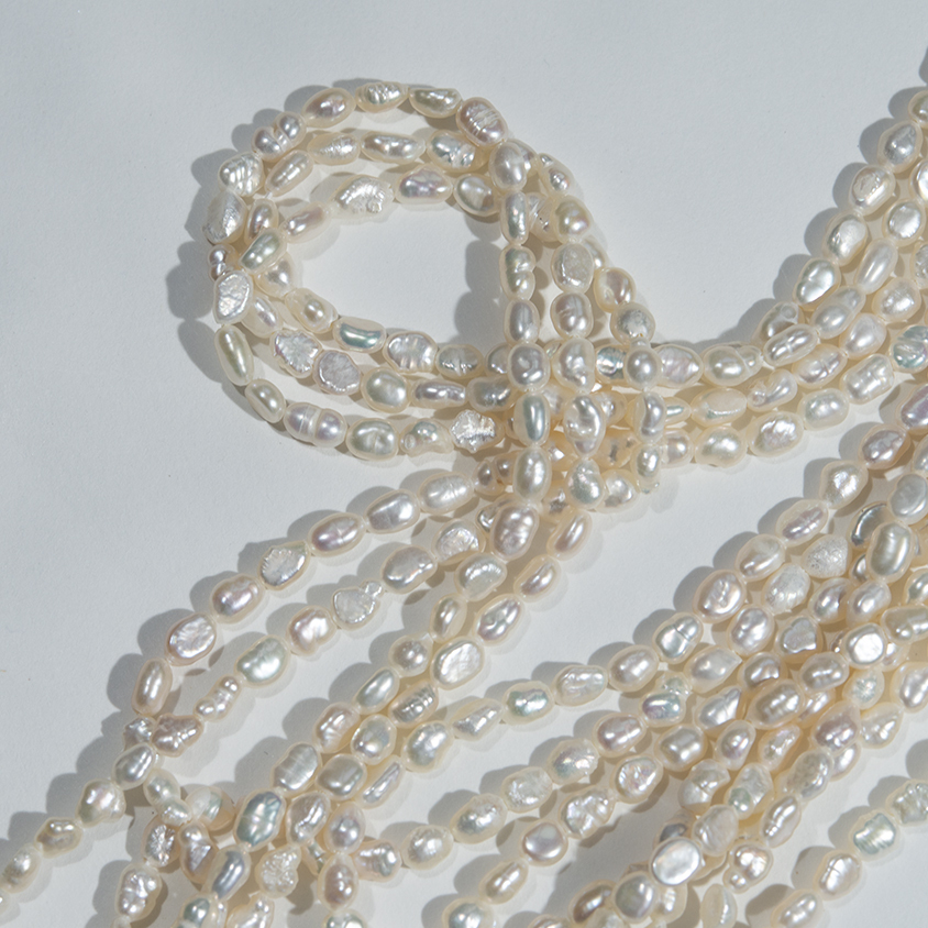 Жемчуг 3,5*5мм(+/- 0,5мм) белого цвета.