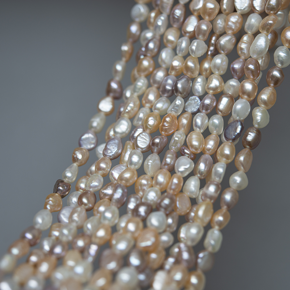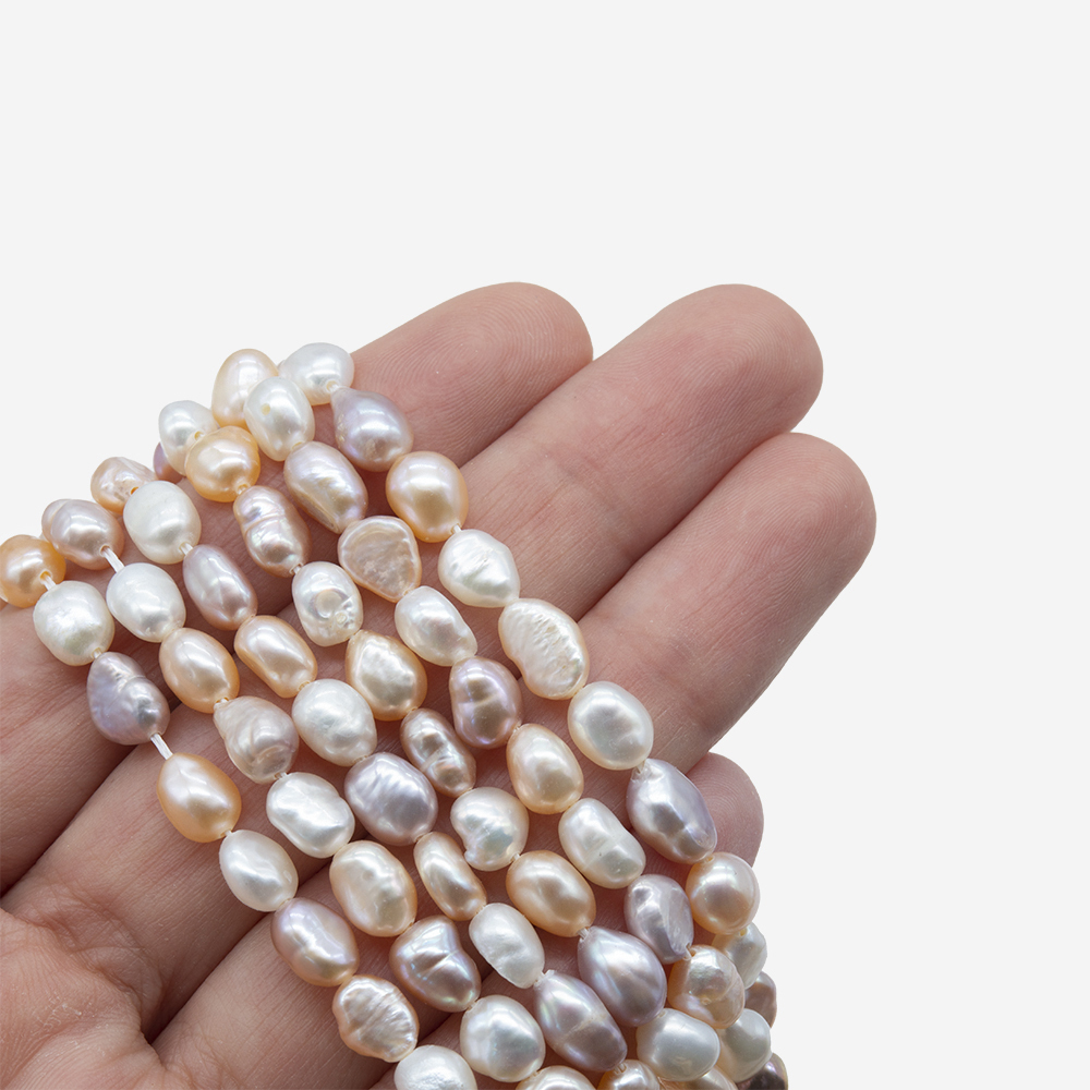 Жемчуг культивированный фриформ, пудровый микс, 5,5*7-8мм
