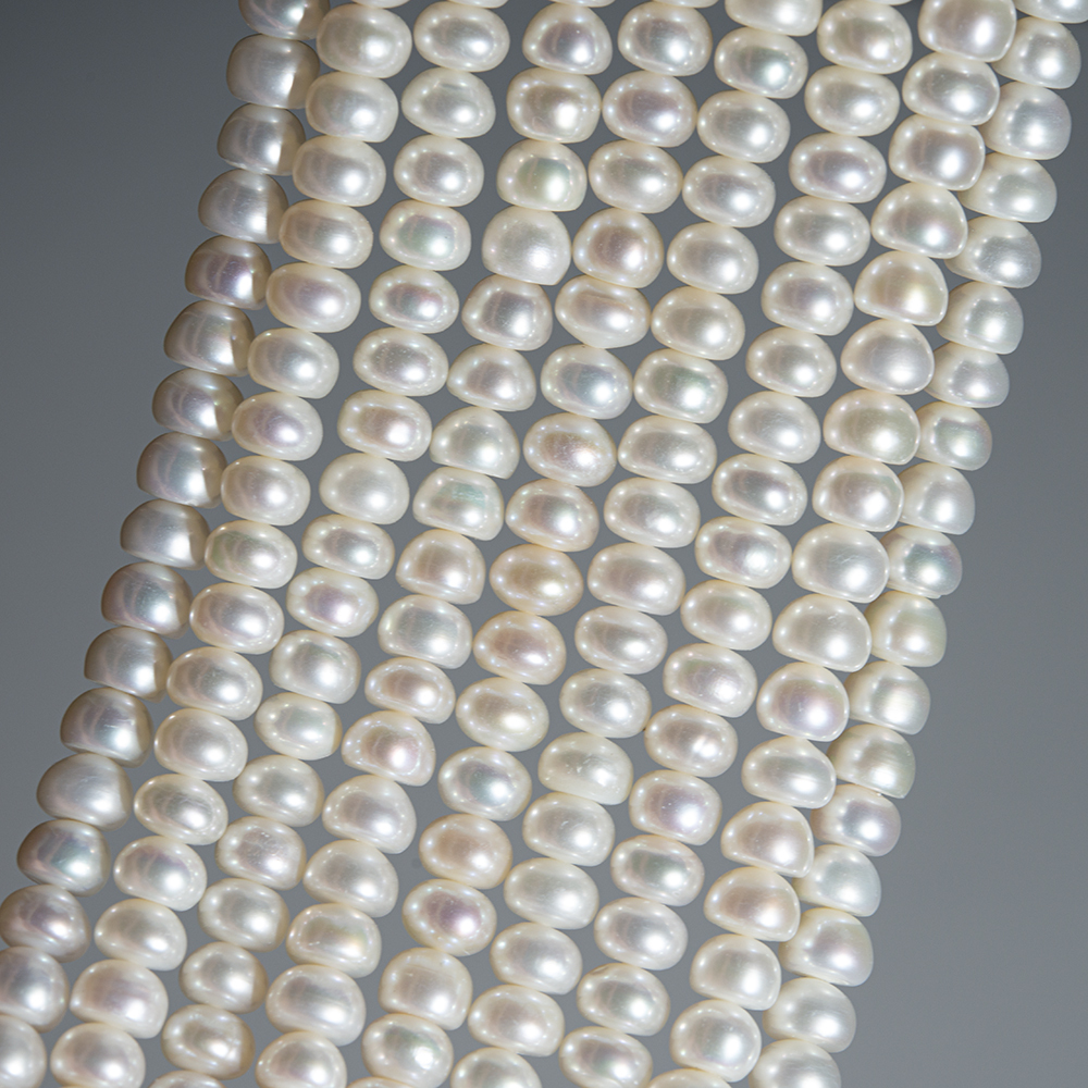 Жемчуг 6,3*4,3мм(+/- 0,5мм) белого цвета сплюснутой формы.