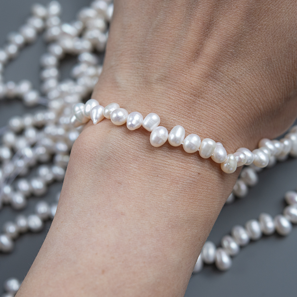 Жемчуг культивированный овальный со смещенным отверстием, белый, 5*7-7,5мм