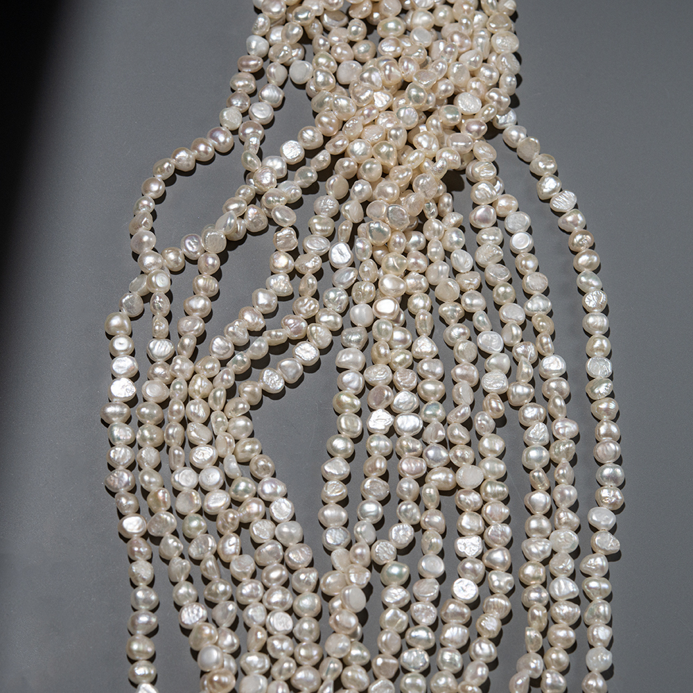 Небольшой жемчуг неправильной приплюснутой формы с поперечным отверстием, размер 5,5-6мм (+/-0,5мм) цвета слоновой кости.