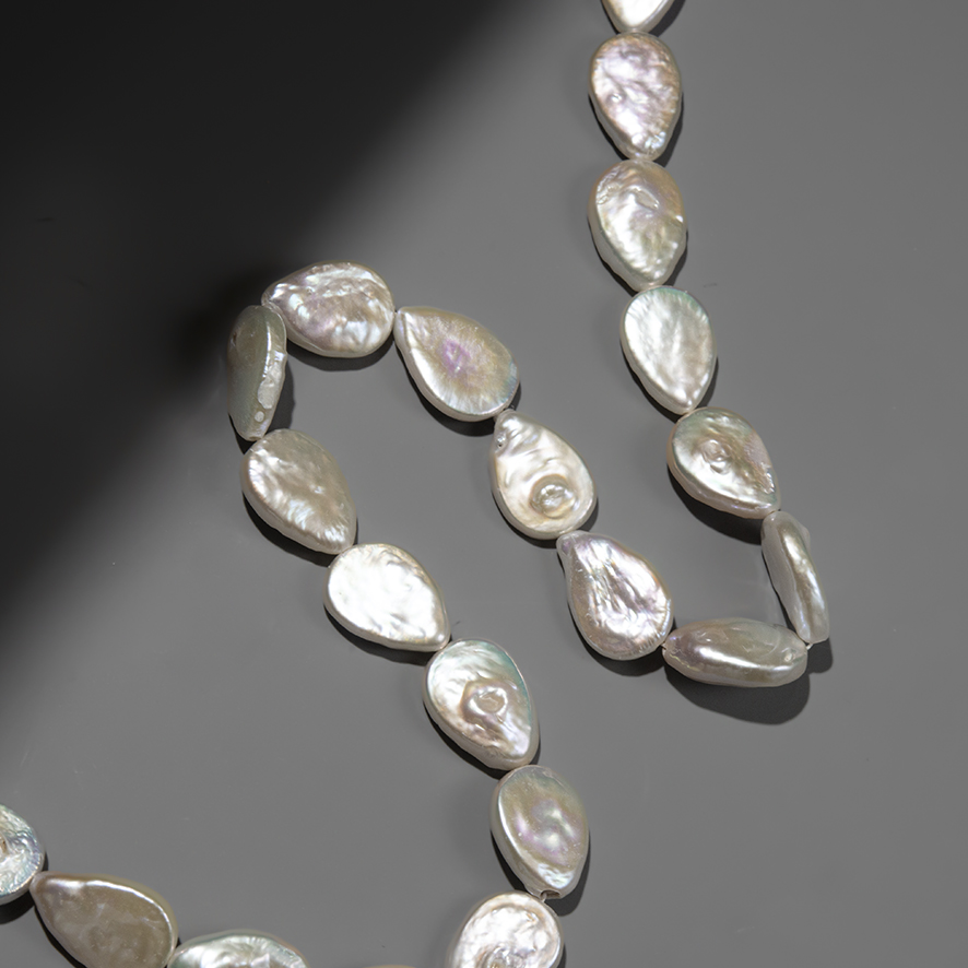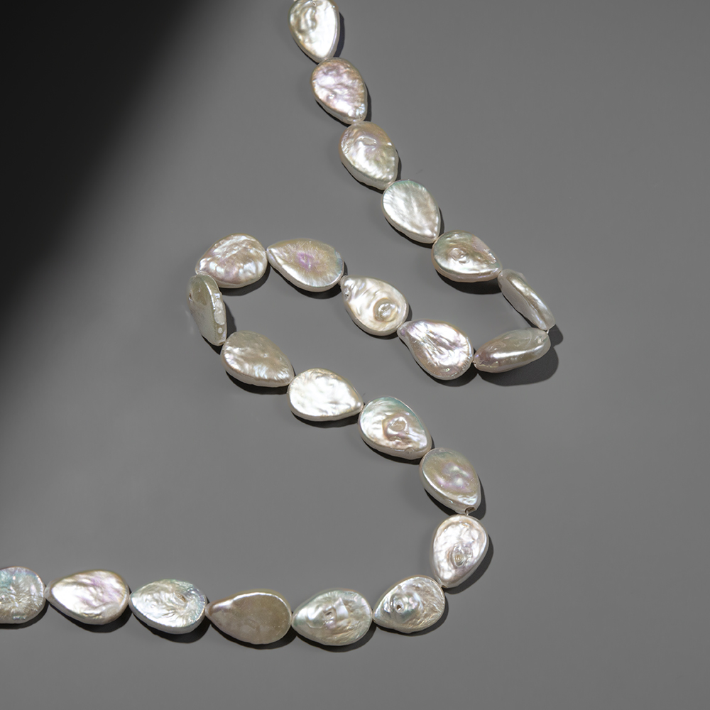 Жемчуг белого цвета каплеобразной формы. Стоимость указана за нить 33см, 23 жемчужины.